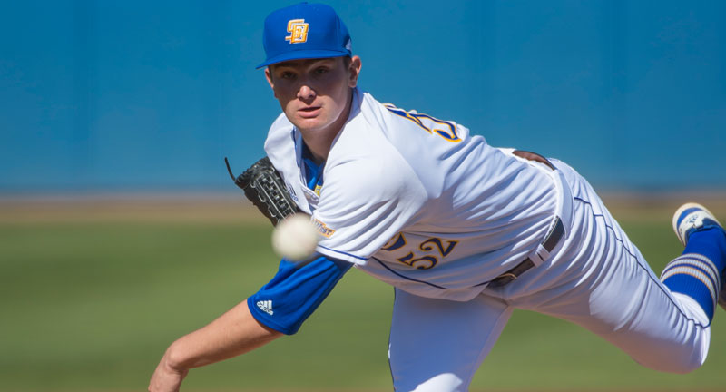 Brecht is a big-bodied lefty with a huge presence on the mound, an imposing figure at a listed 6-foot-7, 215-pounds. Reports had him up to 95 in the fall but in this game, a Friday start on the road against perennial Big West favorite Cal State Fullerton, Brecht’s fastball worked mostly at 88-90 mph, touching 91 a few times. He attacked righthanded hitters with his fastball early in the count with the ability to run it in on their hands. His size, and some deception in his delivery, helped the fastball play up, as it seemed as though his fastball got in on hitters quickly as they had difficult catching up with it.