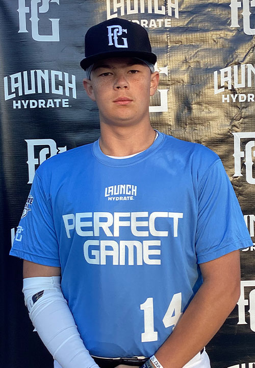 Jacksen Dunn is a 2029 C/RHP/3B with a 6-1 210 lb. frame from Sandy, OR who attends Central Catholic. Big and physical build with lots of present strength. 7.83 runner in the sixty. Primary catcher on defense, sets up tall in a semi-side saddle set up, has a quick exchange and release, also set up one knee down with better actions from this set up, short over the top arm stroke with developing carry on his throws but made accurate throws, has some tools and skills to work with as his arm strength improves. Right handed hitter, has a loose swing with good extension, has rhythm in his load and gets to his front side, got his barrel out front on time and created back spin and some carry, solid hitting tools that use his strength well. Also pitched, works from a full wind up that he repeated well. Fastball topped out at 70 mph to go with a promising change up, stayed down in the zone and had a very quick and easy inning.