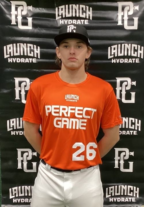 Jalen Lawhead is a 2028 LHP/1B/OF with a 6-1 180 lb. frame from Goddard, KS who attends Eisenhower. Longer athletic build with some present strength and more to come. Works exclusively from the stretch with an aggressive move down the mound, hard rotation into his release and will lose his direction/balance at times, gets good extension out front and was able to throw strikes with all his pitches. Fastball topped out at 84 mph with some short running life, worked both sides of the plate well and got inside on right handed hitters. Showed nice feel for a split change up with good tumble and depth. Also threw a 1/7 curveball that flashed some depth. 4.93 runner in the forty. Secondary outfielder on defense, is aggressive to the ball and works low through it, longer arm action with some young arm strength. Also worked out at first base and showed good athleticism and strong fundamental footwork. Switch-hitter at the plate, has more strength in his hands and bat speed from the left side, drives well into contact and looks to impact the ball, some lift out front. Sets up spread from the right side with a downhill path into contact, hands driven swing with developing ability to release and turn the barrel. Excellent student. Named to the Kansas City Indoor Showcase Top Prospect List.