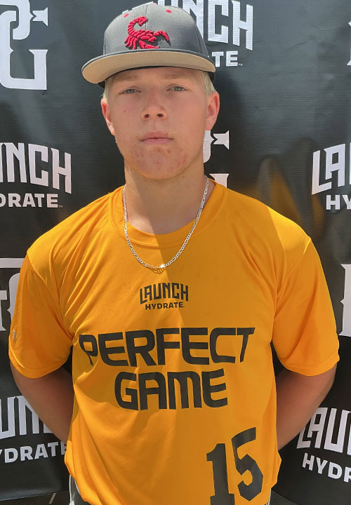 Blake Flauaus is a 2028 C/3B with a 6-0 190 lb. frame from Spring, TX who attends Grand Oaks. Big and strong young build with present strength throughout his frame and room to continue developing physically. 7.60 runner in the sixty. Primary catcher on defense who shows developing actions behind the plate, with some feel for receiving and a compact transfer. Arm strength is building and throws showed accuracy as the session went on. Also takes reps at third base, where he handles the ball deep and flashes some carry across the diamond. At the plate, starts with a narrow, open stance and shows good barrel control with a flat, direct path to the ball. Strength in the hands allows him to impact the baseball when timed up. Still working to consistently stay balanced and on time, but there's some natural thump when he gets extended and drives the ball to the middle of the field. Competitive young hitter with a foundation to build on.
