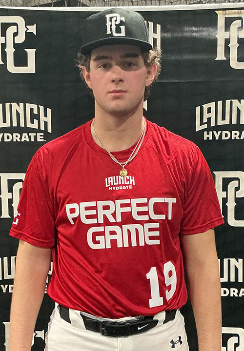 Jackson Carroll is a 2027 RHP/1B/3B with a 6-2 200 lb. frame from Bedford, NY who attends Fox Lane. Larger physical build with good present strength. Works exclusively from the stretch with a closed start from the first base side of the rubber, full arm action to an over the top arm slot, works to get extended down the mound. Fastball topped out at 81 mph and was located well down in the zone with some short running action. Curveball had some vertical depth at times and was landed well for strikes. Secondary corner in fielder on defense, has soft hands and funneled the ball well, changed slots throwing and showed some carry on his throws, moves well for his size, fine for third base. Right handed hitter, sets up in a narrow stance with a hanging front let timer, repeated his timing and swing well, lots of mid field line drive contact, more power there with adjustments and repetitions. Good student.