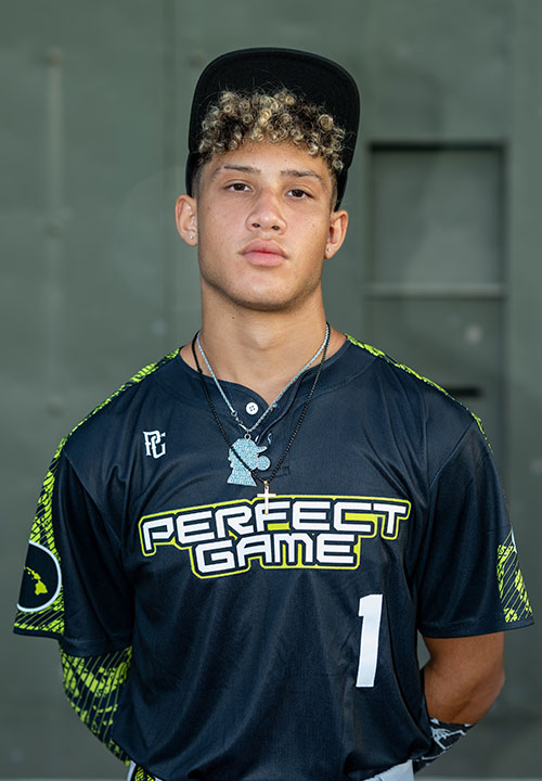 Damian Rivas is a 2029 OF/RHP/MIF with a 5-11 173 lb. frame from Wahiawa, HI who attends Mililani. Medium frame with life to his actions and plenty of current strength with room to add more. Ran the 60 yard dash in 7.05 seconds. Primary OF, working to the ball with deliberate timing and controlled actions moving to the ball. Works the glove out front with one hand gather into clean transfer before accelerating through a lower 3/4 arm angle. Strong accurate feeds up to 85 mph back to the bags. Reps on the IF as well, showing a good first step and playing well in his base. Well refined glove work and ample later mobility both ways. Secondary RHP, working exclusively from the stretch and using a waist high leg lift before transition. Good direction, landing in line leading the way to a high effort acceleration to release point. Worked primarily with a low-to-mid 80s fastball with emerging overall command. Also flashed a breaking ball with slurvish type action as it peaked at 70 mph. RHH working from a medium stance and well balanced pre-pitch. Aggressive handset and loads well with a bit of barrel tilt and showing nice rhythm. Strong hands and twitch to his operation, creating plenty of bat speed and strength at impact. Took a few swing to get on time but once there showed the ability to elevate with projectable power. Really intriguing overall skillset here with more to come. Named to play in the Perfect Game 14U Select Festival.