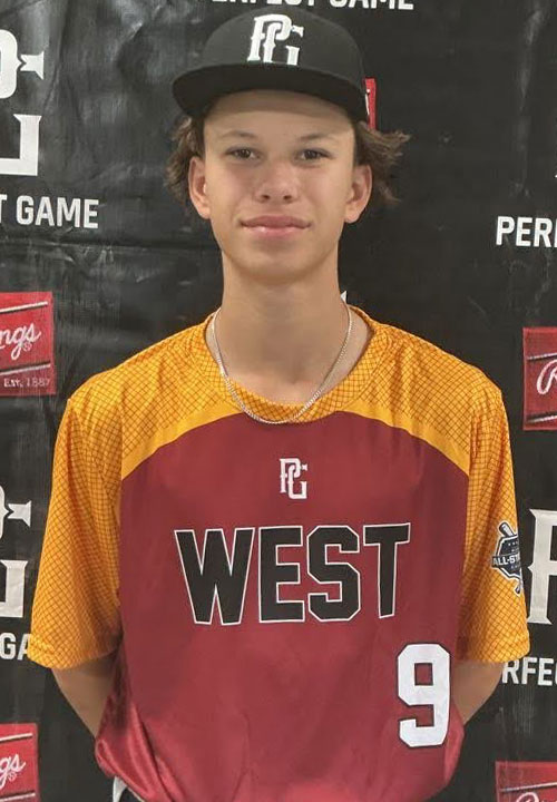 Dylon Honey is a 2028 SS/RHP/OF with a 5-10 140 lb. frame from Northridge,, CA who attends Bishop Alemany. Slender long limbed build with lots of room to get stronger. 7.51 runner in the sixty. Primary shortstop on defense, has active feet with some lower half quickness, fields the ball cleanly out front, changes his arm slot well on the move, made a couple of athletic game plays to show his potential in live action, arm strength profiles best at second base at present. Also worked out in the outfield. Right handed hitter, sets up in a straight stance with a pushed high hand load and a toe tap trigger, short contact oriented swing with a bit of lift out front, worked the middle of the field consistently, repeated his timing well. Good student.