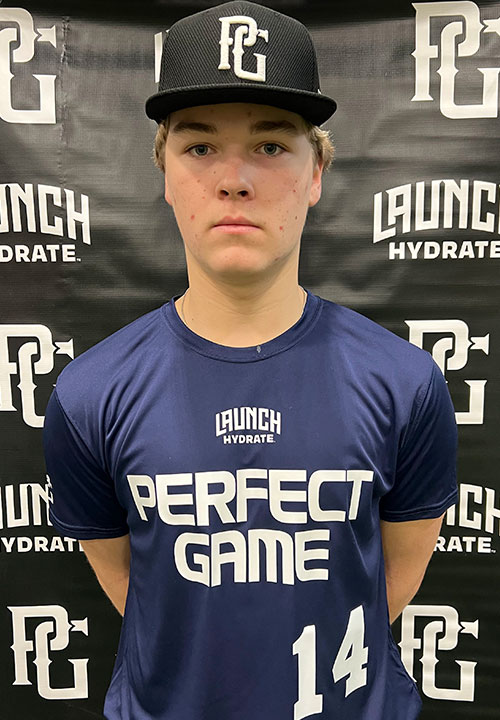 Michael Thompson is a 2027 C/1B/3B with a 6-2 195 lb. frame from Northbrook, IL who attends Loyola Academy. Athletic build with good present strength and plenty of length to get stronger. 8.33 runner in the sixty. Primary catcher on defense. Behind the plate, operates from a taller side saddle. Some aggression out the crouch showing quickness with feet and gains good ground towards 2nd. Efficient exchange/transfer at the mid-chest. Keeps a shorter arm action that has a slight hitch in the back but got off strong throws to the bag where he was 3/5 accurate. At the plate, sits in a medium base and uses smaller leg raise trigger. Quiet rhythm to the hands that takeback slightly. Barrel gets into a flatter launch. Bat path works more steep/direct to the baseball that cuts across at finish. Some inconsistent timing but showed present hand speed/strength. Flashed a bit of impact when he caught it out front. Consistent damage intent to each swing.