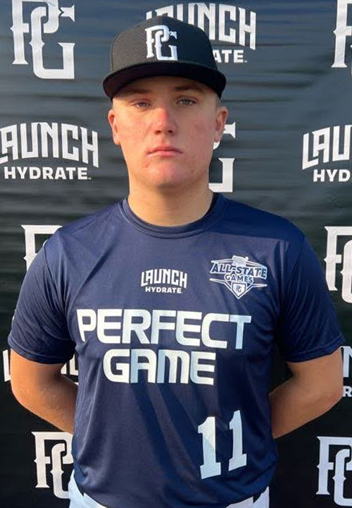 Logan Mackin is a 2027 RHP/1B/3B with a 6-2 225 lb. frame from Minooka, IL who attends Minooka Community. Big and strong physical build. 7.48 runner in the sixty. Primary right-handed pitcher, operates from a compact full wind-up delivery with a leg lift up to the mid-section. Utilizes drop/drive mechanics and takes a clean arm path before accelerating into a high 3/4 arm slot. Fastball was located well throughout the strike zone, ultimately peaking at 85 mph. Mixed in a sweeping curveball and a straight changeup to mistime hitters. Secondary third baseman, works through the baseball with longer strides and funnels it cleanly to the chest. Showed the ability to adjust his glove at the position. Released the ball from a low 3/4 arm slot. Delivered accurate throws up to 82 mph across the diamond. Right-handed batter, starts in a wide stance with an even hand set-up. Utilizes a simple stride for timing before working into a level path path. Displayed rotational swing mechanics with developing feel for staying connected. Impacts the baseball with good strength to the middle of the field when timed up. Power tool will improve with minor mechanical refinements and additional strength. Posted an exit velocity of 80 mph. Excellent student. Named to the Midwest HS All-State Games Top Prospect List.