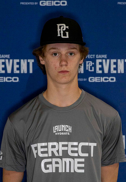 Theo Schroedter is a 2029 OF/RHP/SS with a 6-2 155 lb. frame from Chicago, IL who attends DePaul College Prep. Ran a 7.77 sixty-yard dash. Works from a lean and athletic frame that points to future projection. Moves well on the outfield grass, getting into position via active footwork before employing clean glove work. Produced throws up to 87 from the outfield. At the plate, starts with a wide base and high hands, working to the barrel via a simple short stride. Showcased bat speed and the ability to pepper multiple fields with line drives. Recorded exit velocities up to 83. On the mound, he features projection thanks to his lengthy frame. Utilizes a belt-high leg lift before firing down the mound via a high three-quarters slot. Got the fastball up to 86 with jump from the hand and riding life. Showed feel for a mid-70s changeup that flashed fading action. Also mixed in a vertical 11-5 curveball. Great student.