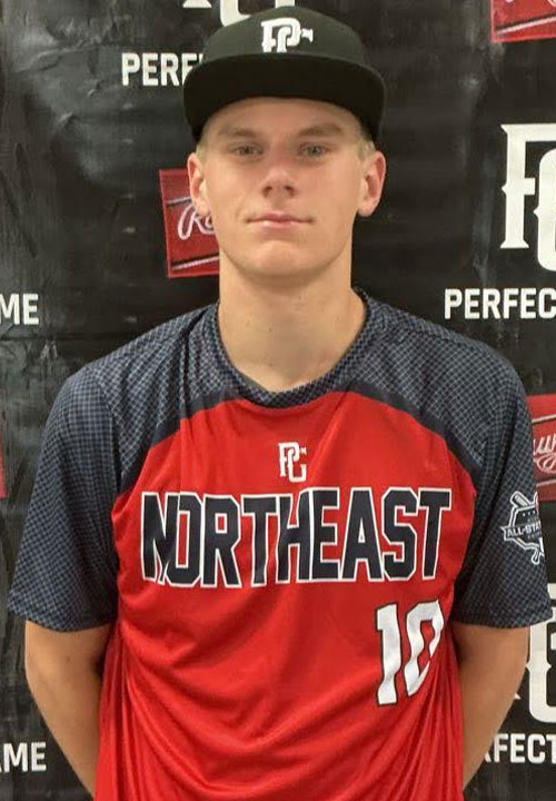 Mark Kenton is a 2029 1B/RHP/OF with a 6-3 170 lb. frame from Sturbridge, MA who attends Worcester Academy. Tall and angular young athletic build, very projectable physically. Left handed hitter, sets up in a narrow upright base with a simple stride into contact, sinks into his hips well and creates some young bat speed, still developing his timing but creates leverage and shows some power potential, best contact to the pull side. 7.58 runner in the sixty. Primary first baseman on defense, gets rushed at times but moves well and has arm strength, turned well on his throws. Also worked out in both the infield and outfield, will need lots more repetitions and fundamentals at those positions but showed his arm strength well. Took a turn on the mound, works from a full wind up with a high front side and a longer arm action in back, loose and whippy coming through at a high 3/4's arm slot. Fastball was mostly in the upper 70's with some running life. Also mixed in a mid-60's curveball that showed some 11/5 depth and a straight change up. Chance to develop on the mound as well as as a hitter. Good student.