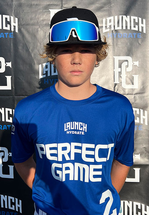 Liam O'Hair is a 2029 MIF/RHP/C with a 5-6 117 lb. frame from Osceola, IA who attends Interstate 35. Slender frame. Ran an 8.86 60-yard dash. Versatile defender that showed developing fundamental traits in both the infield and at catcher. Hit from an even base, shows a slight uphill bat path and developing bat speed that will come with added strength. Tall and fall mechanics with a long arm action and 3/4 slot on the mound. Showed developing arm strength with beginning stages stuff.