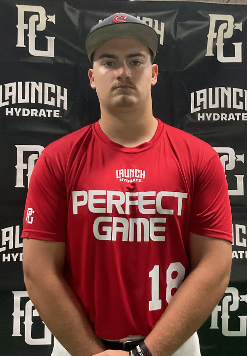 Foster Myhre is a 2026 3B/RHP/1B with a 6-3 220 lb. frame from Burt, IA who attends Algona. Big and strong physical build. 7.56 runner in the sixty. Primary third baseman on defense, has step by step actions to the ball, works through it and keeps his feet active, good glove work to the back hand, made accurate throws, solid overall. Right handed hitter, sets up from a spread and slightly closed stance, rotational lower half swing with a line drive swing plane, has some present strength but hands tend to be stiff and locked coming through the zone to contact, has the tools to keep improving with the bat. Took a turn on the mound, has a side step/leg raise full delivery with good coil over the rubber, drop and drive mechanics down the mound, tends to fall off to the first base side into release. Fastball was in the mid 70's with some downhill plane and some sink down in the zone. Threw a sweeping slider from a lower release slot as his breaking ball. Good student.