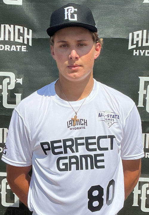 Andrew Daigle is a 2026 3B/1B with a 6-0 195 lb. frame from Cypress, TX who attends Bridgeland. Larger frame with compact strength throughout. Recorded a 6.94 second sixty-yard dash time. Primary infielder with a corner profile. Showed some agility to either side, while displaying a clean funnel and proper footwork into release. Works downhill through the baseball, changed slots slightly and recorded accurate throws up to 82 mph across the diamond. Right-handed hitter that hits from an even, bent-knee stance with a high hand set and slight leg lift trigger. Whole field approach with slightly elongated swing, showed strength at impact and the ability to carry the gaps effortlessly. Will continue to improve with slight swing adjustments, which will help adjustability. Good Student.
