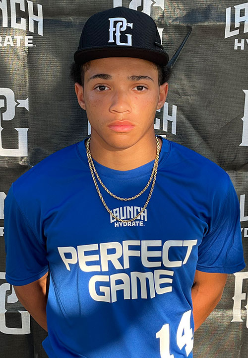 Kaleb Thomas is a 2026 SS/RHP/OF with a 5-9 165 lb. frame from Humble, TX who attends Atascocita. Medium athletic build with some strength and more to come. 6.74 runner in the sixty. Primary shortstop on defense, has nice arm strength with good carry from higher slots, athletic actions in his lower half but still developing his fielding ability, tends to field the ball deep and get his glove down late. Graded out better in the outfield, arm works very well with big carry, speed will also play up with center field potential, cleaner actions through the ball and into his throws, played with confidence in the outfield. Right handed hitter, sets up in a narrow and open stance with a compact hand load, big hanging front leg trigger, has some bat speed and flashed the ability to impact the ball, still developing timing consistency. Good student.