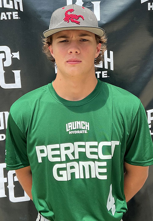 Caleb Green is a 2027 C/RHP/1B with a 5-11 150 lb. frame from Spring, TX who attends Grand Oaks. Slender athletic build with the beginnings of some present strength. Primary catcher with a slightly side set stance while receiving the baseball. Gains ground with lower half to target while working through exchange. Clean, lower exchanges and released from a compact three-quarters arm slot. Created some uphill carry to the bag topping at 75 mph, best pop time of 2.03. Also worked out from the infield showing sound footwork while traveling to the ball. Funnels with two hands out front from a slightly deeper position. Released from a looser three-quarters arm slot flashing carry to the bag at 82 mph. Right handed hitter with a narrow, balanced stance. Utilized a small leg lift trigger and load. Present bat speed to contact with an uphill barrel plane. Looked to drive the ball with intent between the outfield gaps. Good student.