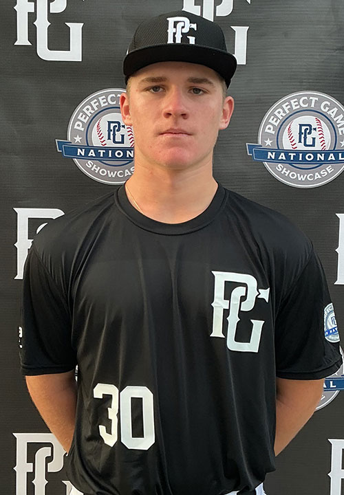 RJ Shields is a 2027 OF/RHP with a 6-1 205 lb. frame from Venice, FL who attends Venice. Strong and athletic build. 7.15 runner in the sixty. Primary outfielder on defense, has big arm strength in the outfield with low and online throws, can quicken his game actions and release, right field prototype tools. Left handed hitter, sets up with an open front side with a hanging leg raise load and short stride into contact, gets the barrel out front and creates big bat speed and impact, looking to pull and lift the ball, squared up hard in the games including a pull side bomb. Also pitched, works from a side step delivery with a high front side and good line to the plate, high 3/4's arm slot, works under control. Fastball topped out at 87 mph, tended to guide his curveball with some shape at times. Power bat/Power arm combination. Very good student.