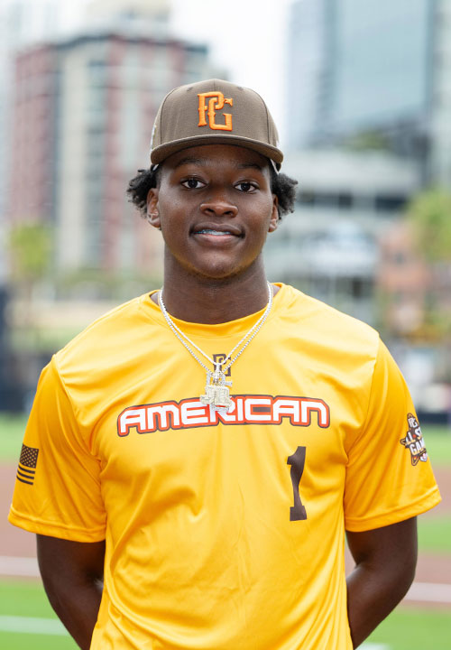 Two-way standout who plays all over the field, 6.75 runner, 91 mph from the mound, 93 OF/88 C, 507-4-38 in 2025, MVP at WWBA Sophomore WC.