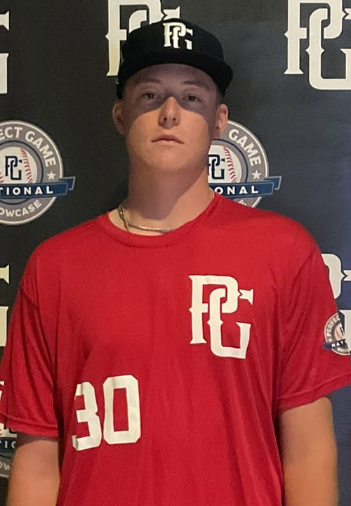 Carson Moser is a 2026 RHP/1B with a 6-7 215 lb. frame from Greenfield, NY who attends Saratoga Central Catholic. Extra big and tall high waisted build, has some present strength and plenty more to come. Works from a belt high leg raise with a longer arm action that creates some whip through release, hides the ball in back with an on-line arm stroke, repeats his mechanics well. Fastball was in the low 90's and topped out at 94 mph with big spin characteristics, lots of carry up in the zone and some running life down. Firm change up was a good pitch with nice arm side fading depth. Threw a hard slider with some short sharpness as his breaking ball. Works well to both sides of the plate, just needs more consistency to take the next step, has high ceiling fastball potential with the shape and spin. Excellent student, verbal commitment to Duke.