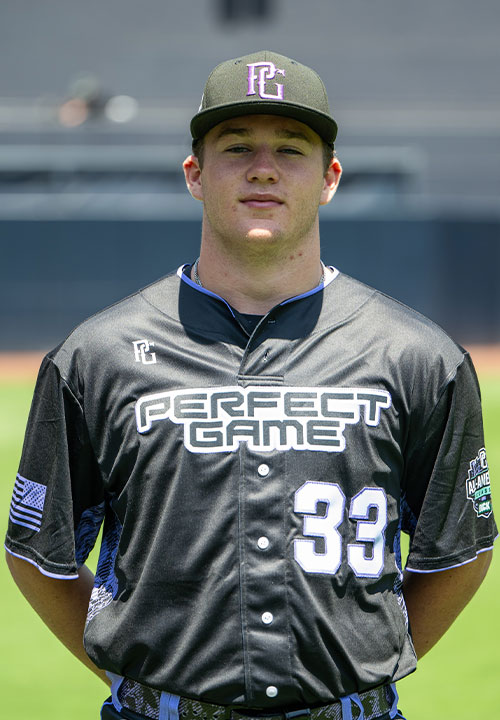 Phinn Waters is a 2026 LHP/1B/OF with a 6-0 195 lb. frame from Collierville, TN who attends Briarcrest Christian. Physical build with good present strength. Works from a drop and drive delivery with good momentum down the mound, longer actions with some whippy arm speed. Fastball topped out at 93 mph, gets outstanding carry in the zone with deception, 22"-23" of IVB consistently, lots of swing and miss on fastballs, disappears at the plate. Split finger change was a nice pitch with good tumble at the plate. Threw a hard and short slider as his breaking ball. Good student with a verbal commitment to Texas. Named to play in the Perfect Game All-American Classic.