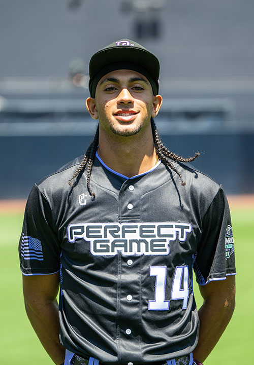 Anthony Murphy is a 2026 OF/RHP with a 6-0 190 lb. frame from Corona, CA who attends Corona. Medium athletic build with good present strength. Right handed hitter, sets up in a narrow straight stance with a low hand load and a simple move into contact, has easy bat speed, short to the ball and long and extended through it, ball comes off the barrel hard, has some leverage and lift, outstanding hitting tools to continue to develop. 6.54 runner in the sixty. Primary outfielder on defense, easy mover through the ball with clean actions, stays low fielding, long and loose arm action with very good carry and accuracy. Center field tools and actions. Good student with a verbal commitment to Louisiana State. Named to play in the 2025 Perfect Game All-American Classic.